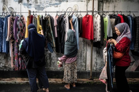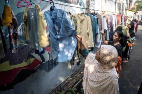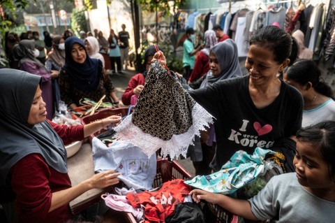 Warga mengambil bahan makanan dan pakaian dalam acara bazar kebutuhan pokok gratis di kawasan Jati Padang, Jakarta Selatan, pada Jumat (29/3). Foto: Aprillio Akbar/ANTARA FOTOBazar tersebut digelar sebagai bentuk aksi solidaritas dan kepedulian terhadap sesama saat bulan Ramadan 1445 H. Foto: Aprillio Akbar/ANTARA FOTOSejumlah warga mengambil pakaian dalam acara bazar kebutuhan pokok gratis di kawasan Jati Padang, Jumat (29/3/2024). Foto: Aprillio Akbar/ANTARA FOTOWarga membawa bahan makanan dan pakaian dalam acara bazar kebutuhan pokok gratis di kawasan Jati Padang, Jumat (29/3/2024). Foto: Aprillio Akbar/ANTARA FOTOSejumlah warga mengambil pakaian dalam acara bazar kebutuhan pokok gratis di kawasan Jati Padang, Jumat (29/3/2024). Foto: Aprillio Akbar/ANTARA FOTO