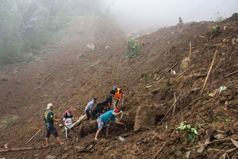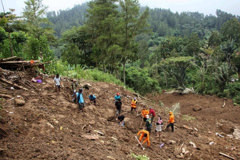 Tanah longsor tersebut terjadi pada hari Sabtu (13/4) malam yang menewaskan 18 orang.