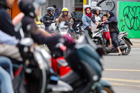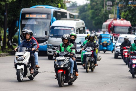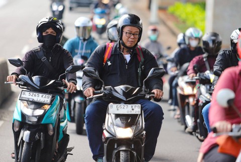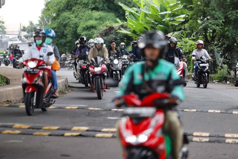 Terlihat kendaraan roda dua memadati ruas jalan seperti di Kalimalang, Cawang hingga Kalibata.