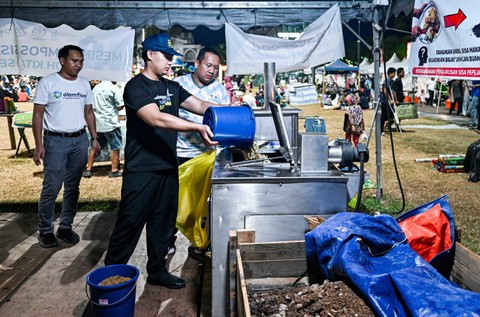 Zulyna Nordin menambahkan pupuk kompos pada tanamannya di kebun organiknya di Kuantan, negara bagian Pahang, Malaysia. Foto: Mohd RASFAN/AFPSetelah berbuka puasa Ramadhan di luar masjid di Malaysia, orang-orang membuang sisa makanan mereka ke dalam mesin yang mengubah sisa makanan menjadi pupuk organik untuk tanaman. Foto: Mohd RASFAN/AFPInisiatif sederhana pemerintah di negara bagian Pahang bertujuan untuk mengurangi sampah, terutama selama bulan suci Islam ketika sejumlah besar makanan dibuang setiap hari. Foto: Mohd RASFAN/AFPFoto: Mohd RASFAN/AFPFoto: Mohd RASFAN/AFPFoto: Mohd RASFAN/AFPFoto: Mohd RASFAN/AFP