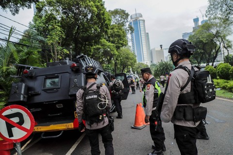 Polda Metro Jaya mengerahkan personel untuk memastikan keamanan kegiatan tersebut. Berdasarkan pantauan kumparan, terlihat personel keamanan berbaris saat mengikuti apel jelang penetapan presiden-wakil presiden terpilih, Rabu (25/4/2024).