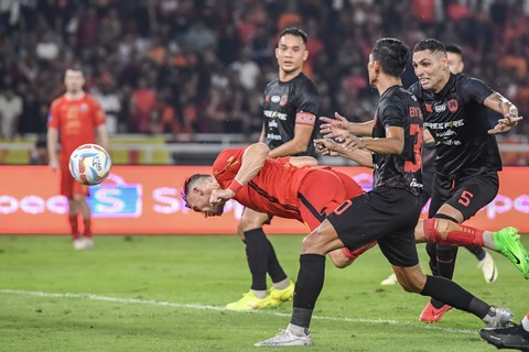 Pesepak bola Persija Jakarta Maciej Jacek Gajos (kiri) berebut bola degan pesepak bola Persis Solo Mochamad Sulthon Fajar (kanan) dalam lanjutan Liga 1 di Stadion Utama Gelora Bung Karno (SUGBK) Senayan, Jakarta, Rabu (17/4/2024). Foto: ANTARA FOTO/M Risyal HidayatMarko Simic mengemas gol semata wayang untuk membawa Persija Jakarta menang 1-0 atas tamunya Persis Solo pada pertandingan Liga 1 Indonesia di Stadion Utama Gelora Bung Karno, Jakarta, Rabu malam. Foto: ANTARA FOTO/M Risyal HidayatHasil itu membawa Persija naik satu strip untuk menghuni posisi kesepuluh dengan 41 poin, sedangkan Persis tertahan di posisi kedelapan dengan 44 poin. Foto: ANTARA FOTO/M Risyal HidayatTuan rumah Persija mengambil inisiatif menyerang sejak awal laga. Peluang pertama Macan Kemayoran dimiliki pada menit ke-17 lewat umpan Ryo Matsumura yang disambut sepakan voli melambung Marko Simic. Foto: ANTARA FOTO/M Risyal HidayatPersija Jakarta menang dengan skor 1-0 atas Persis Solo. Foto: ANTARA FOTO/M Risyal Hidayat